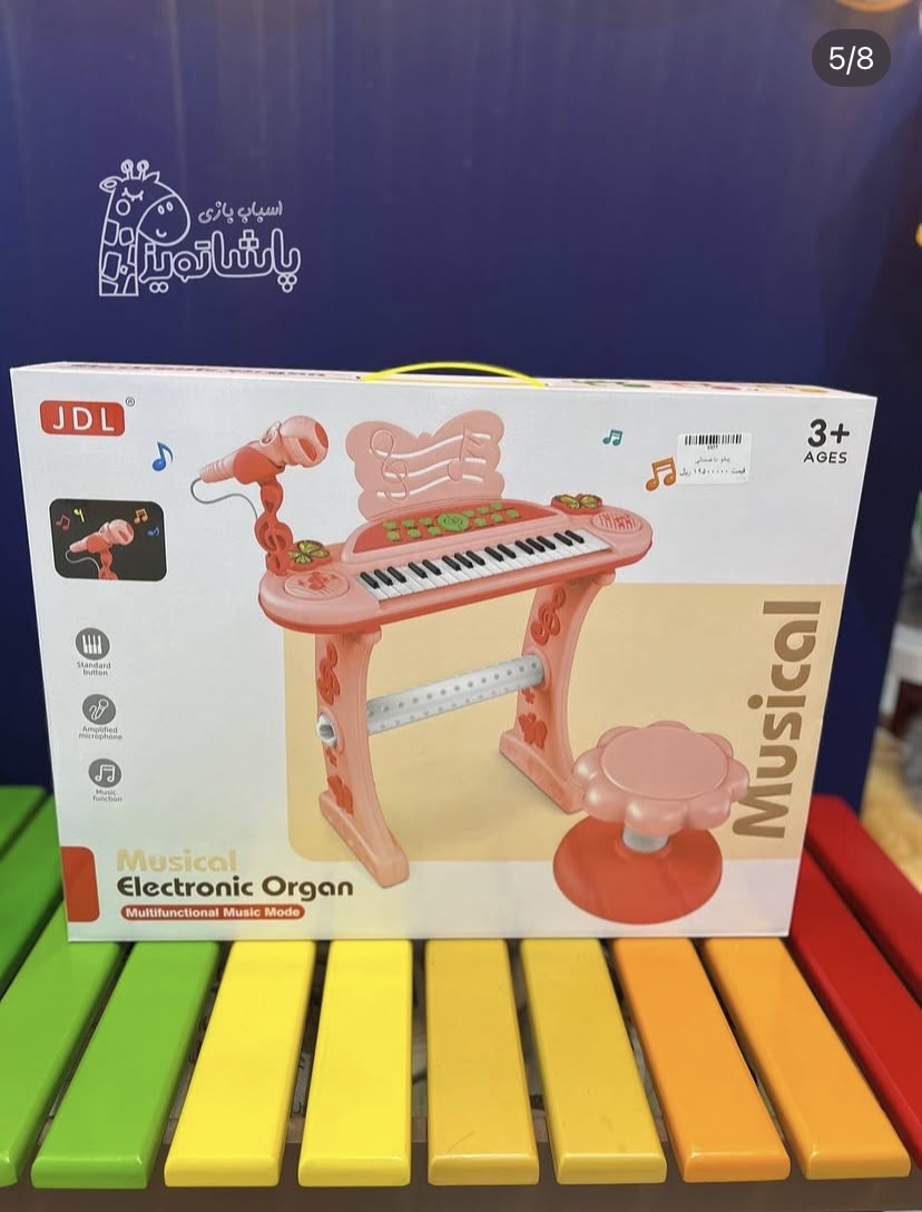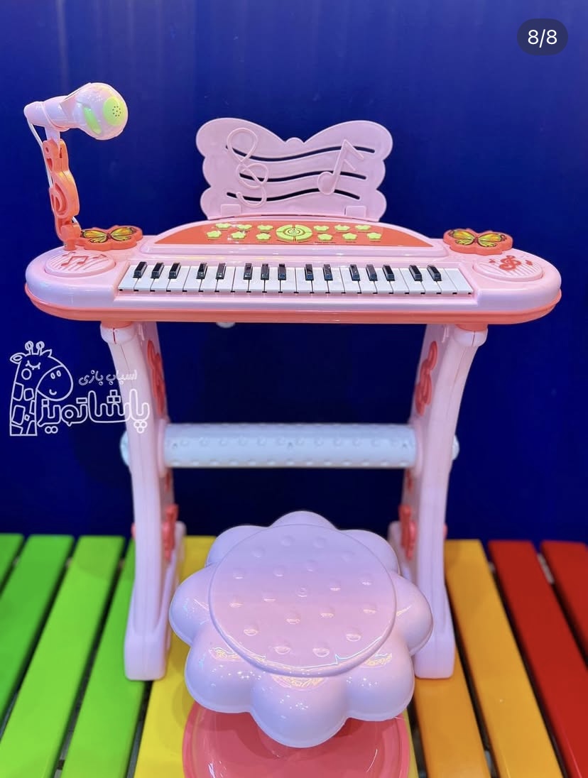 Description: A colorful kids’ electronic organ with microphone and stool, featuring fun sounds and multiple modes to inspire young musicians aged 3+. Key Features